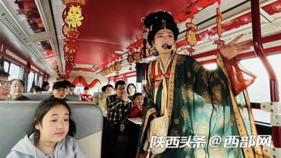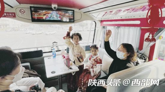 燈火暖長安,龍啟中國年。新春佳節(jié),西安特推出龍年主題城市觀光車,車內(nèi)張燈結(jié)彩,春節(jié)的氛圍感十足,市民乘坐觀光車即可一站式賞大唐風(fēng)華,看西安街頭花燈璀璨。
